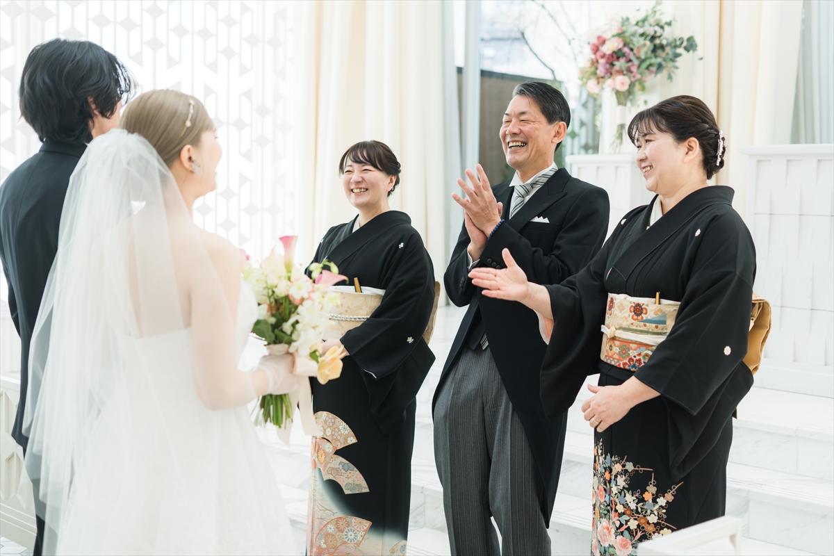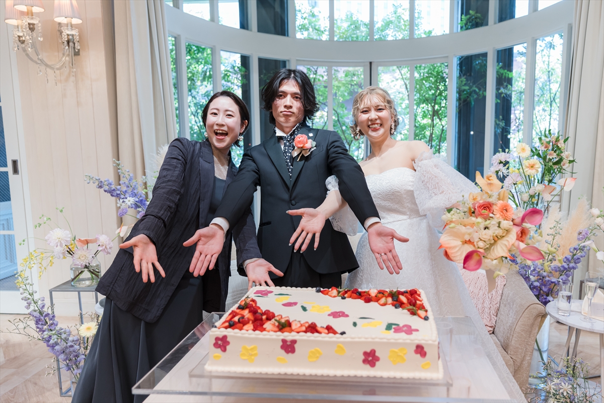 結婚式まで期間が短い中でも、何度もクルヴェットへお打合せにお越しいただき本当にありがとうございました!おふたりが頑張って準備を進めてくださっておかげで無事にこの日を迎えられました。こだわりのケーキはもちろん、ちょっと変わったドレス色当てクイズや乾杯のご挨拶など、とてもおふたりらしい一日になりましたね!みほさんが中心となって考えてくださった、衣裳をはじめとしたトータルコーディネートは本当におしゃれでした♡そして何よりもおふたりにとってたいせつなゲストの皆さまが温かい方たちばかりで、ノリもよく、一緒にこの日を創り上げてくださったことに感謝の気持ちでいっぱいです。