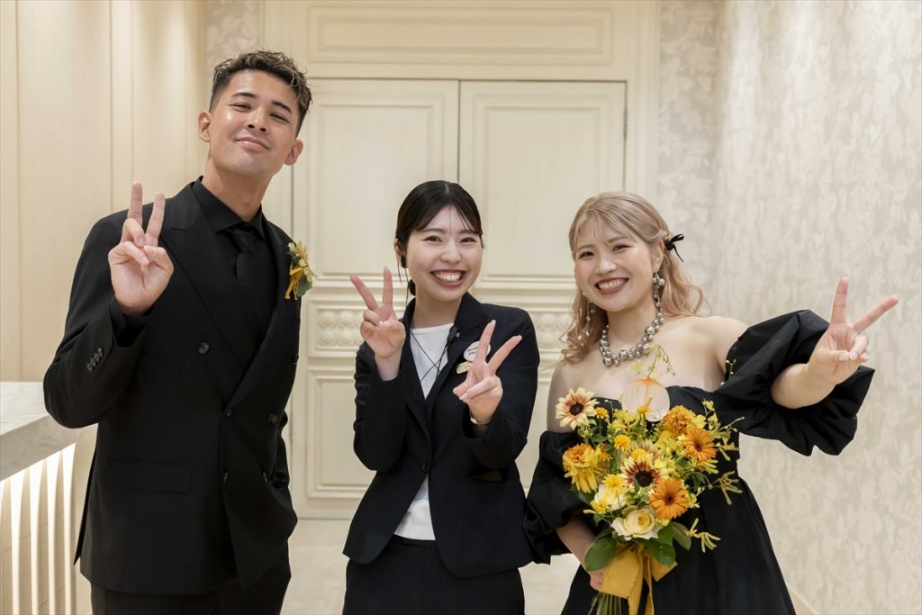 たくさんのお打ち合わせで一つ一つこだわり、一緒に考え、創り上げてきた一日が形となった当日は私にとってもわすれられない素敵な一日になりました!特に、ブラックコーデでかっこよく決めたおふたりの再入場では、ゲスト全員を巻き込み大盛り上がで、おふたりらしさ全開の素敵なお時間になりましたね!
