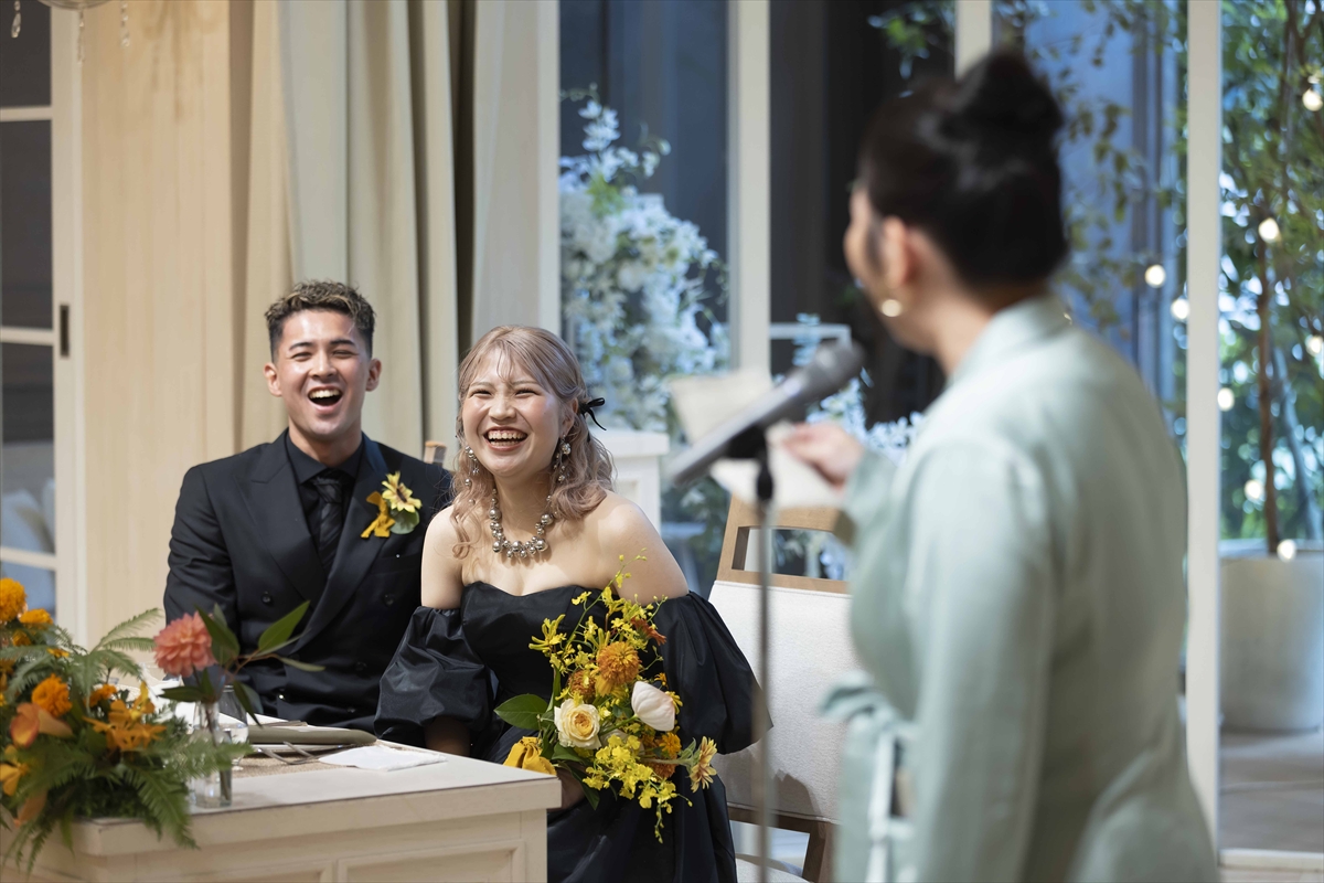 たくさんのお打ち合わせで一つ一つこだわり、一緒に考え、創り上げてきた一日が形となった当日は私にとってもわすれられない素敵な一日になりました!特に、ブラックコーデでかっこよく決めたおふたりの再入場では、ゲスト全員を巻き込み大盛り上がで、おふたりらしさ全開の素敵なお時間になりましたね!